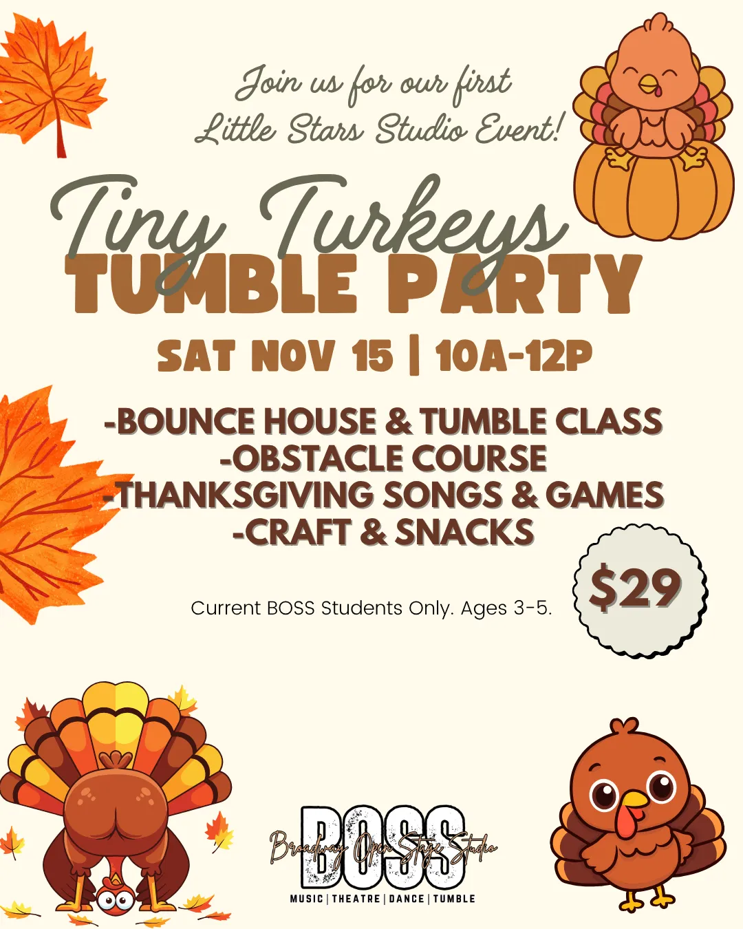 From your kiddo's very first dance class to their senior year solo, BOSS is where the magic happens! It's not just about perfecting skills. Our business is nurturing awesome humans who are also talented performers. As the only performing arts studio in the area offer music, theatre, dance, and tumble, BOSS allows students to explore their individual talents and find their passion!